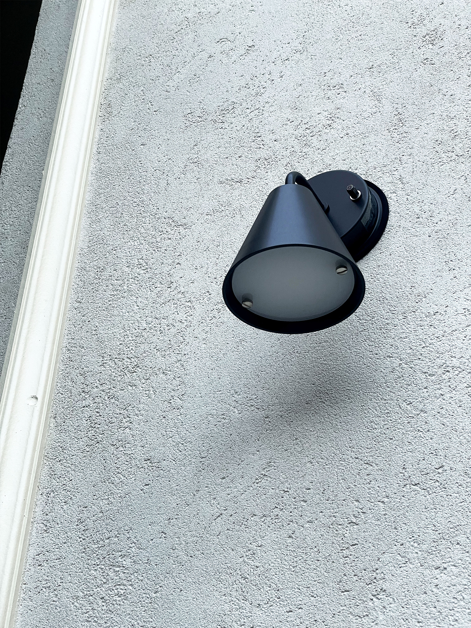 計算された外壁照明が建物の輪郭をやわらかく浮かび上がらせ、上質で洗練された印象を際立たせます。